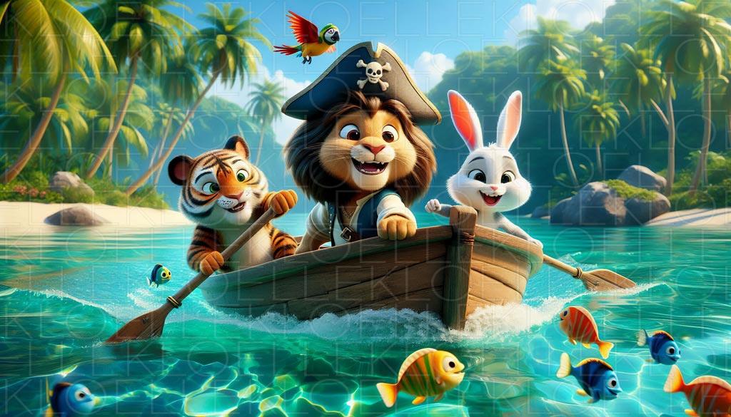 Fototapet Barnerom Piratløve og Venner på Skattestranden | Kloelle