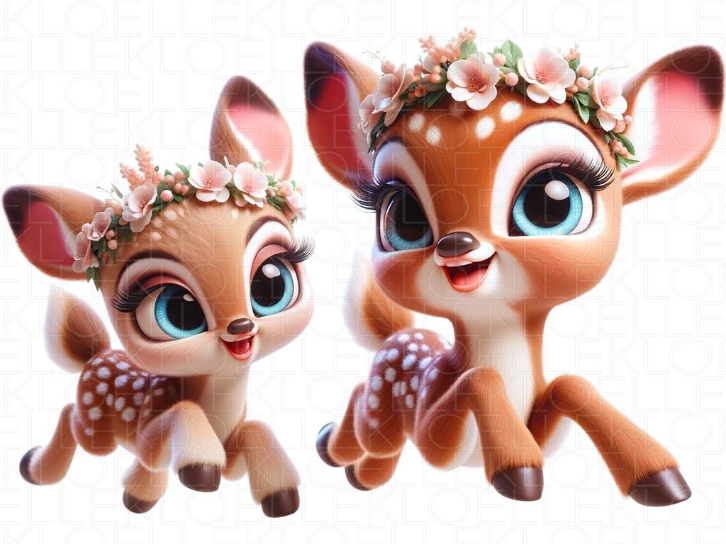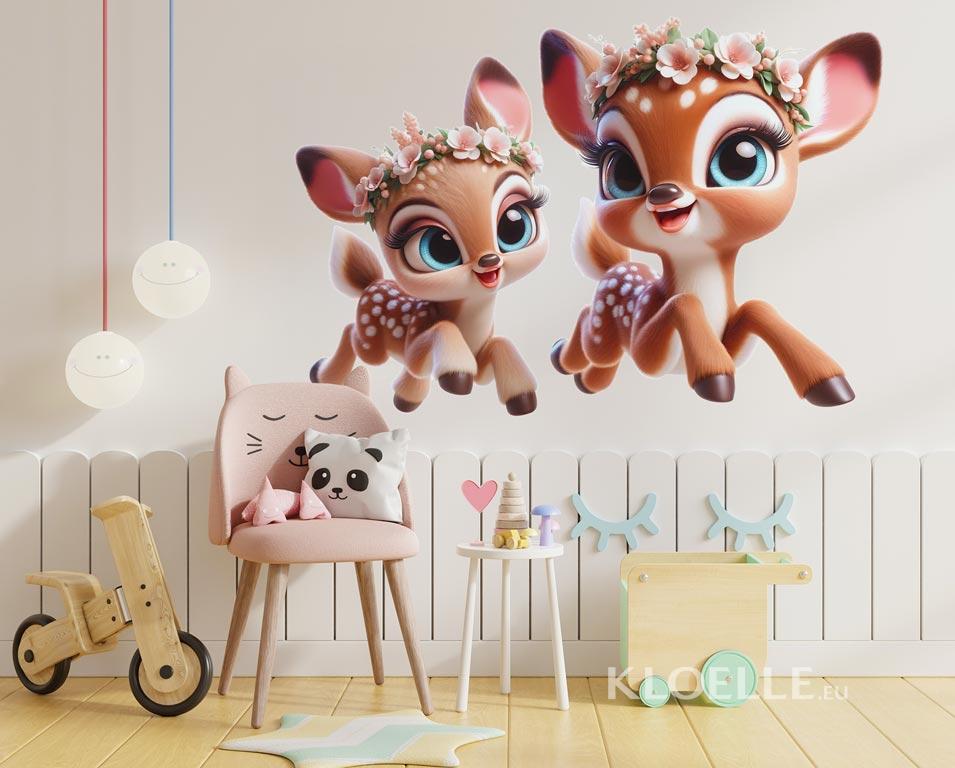 Barn Veggklistremerker Små Hjortekalver med Blomster | Kloelle