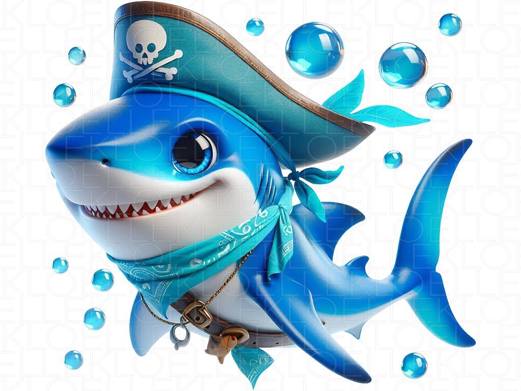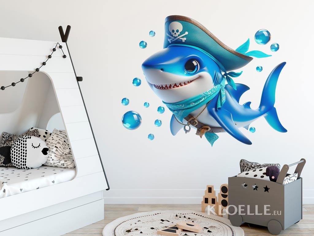 Autocolantes de Parede Infantil Capitão Tubarão com Chapéu Pirata | Kloelle
