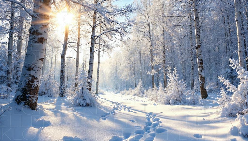 Murais de Parede Dia de Sol na Floresta Nevada | Kloelle