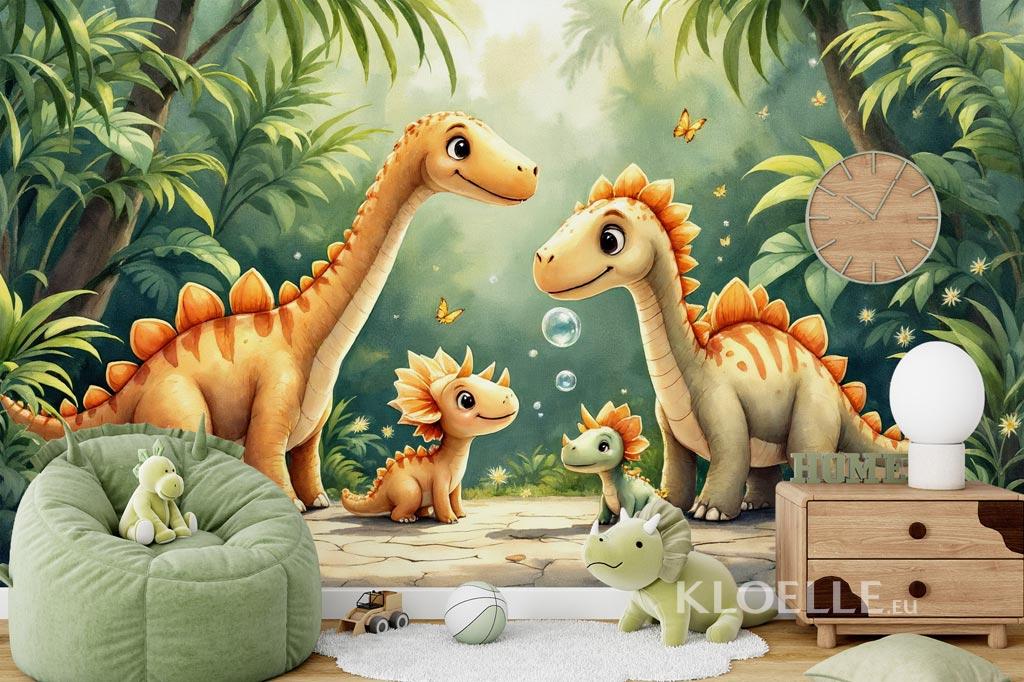Murais de Parede Quarto Infantil Família de Dinossauros na Floresta Verde | Kloelle