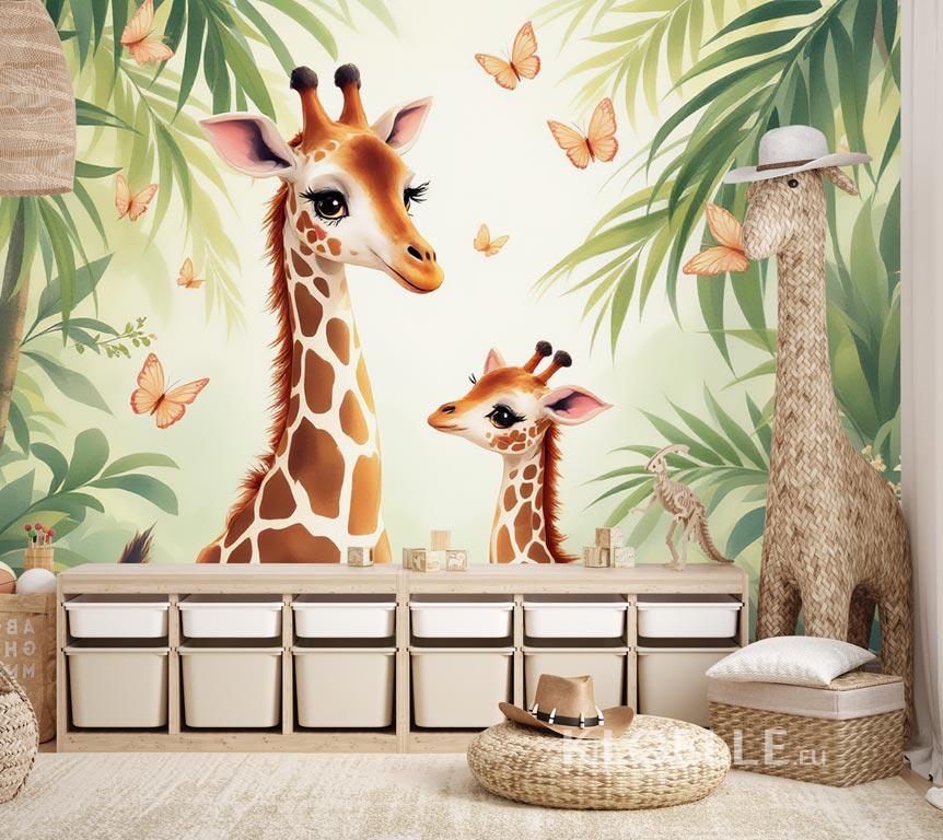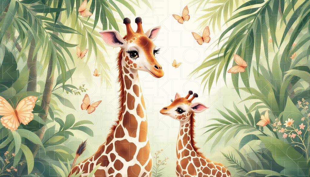Murais de Parede Quarto Infantil Girafas na Floresta em Tons Pastel | Kloelle