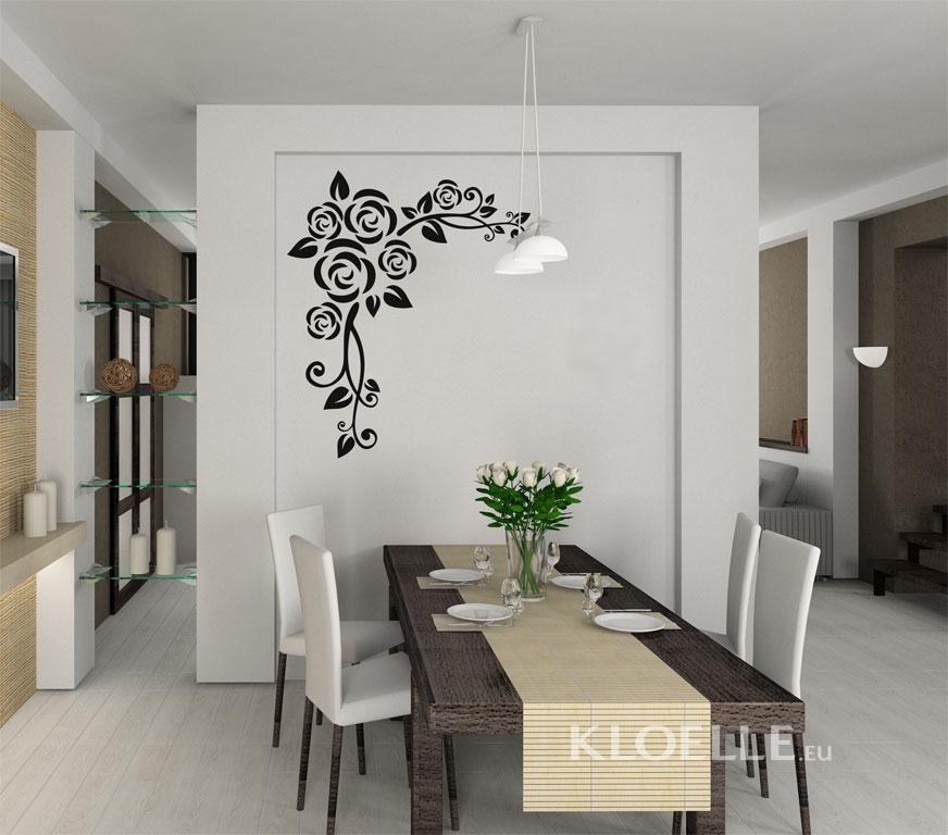 Aprecia os papéis de parede com padrões florais que se usavam noutros séculos para decorar salas e quartos? Se quer dar um toque clássico à sua decoração, experimente aplicar este vinil decorativo junto à esquina de uma parede. Este adesivo apresenta um arranjo floral com rosas, pequenas folhas e galhos arabescos.