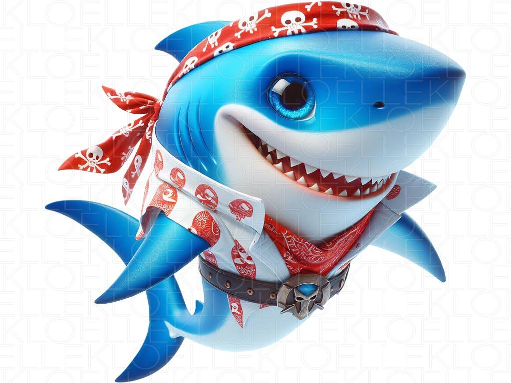 Tubarão Azul com Traje de Pirata
