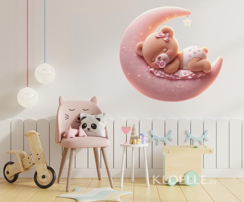 Autocolantes de Parede Infantil Ursinha de Peluche na Lua Rosa | Kloelle