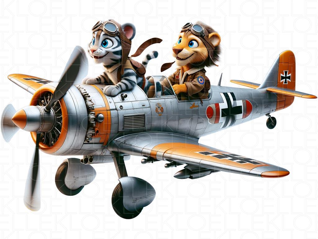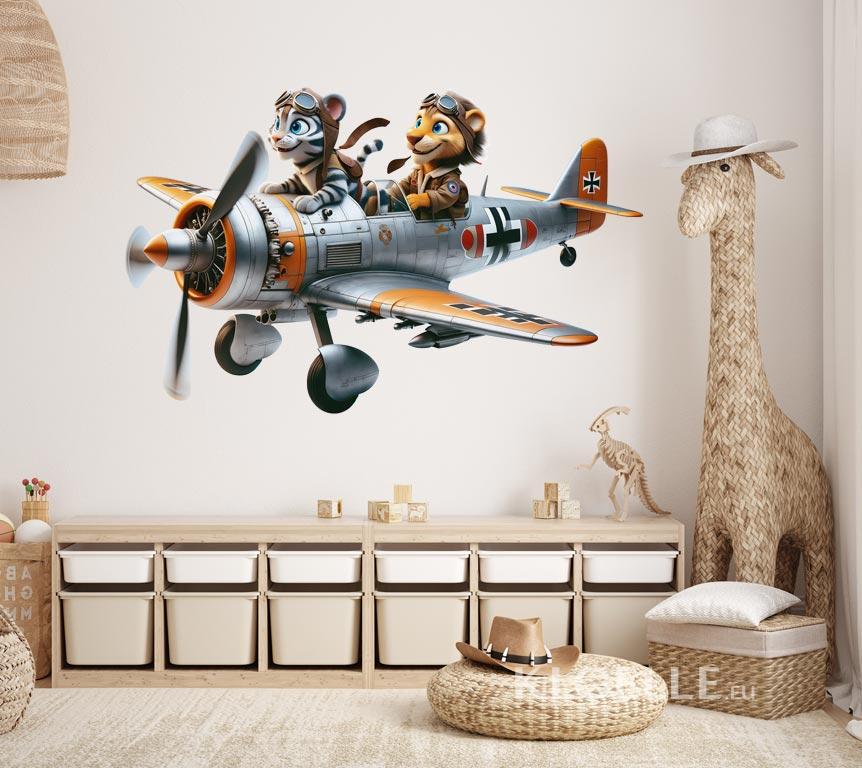 Väggdekor för Barn Lejon och Tiger i Äventyr med Retroplan | Kloelle