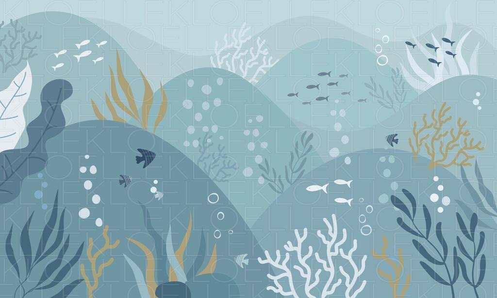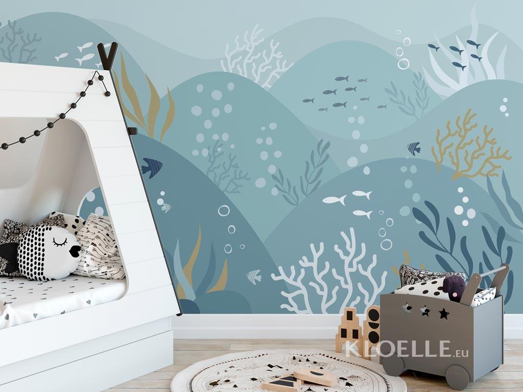 Fototapeter Barnrum Undervattensvärld i Mjuka Blå Toner | Kloelle